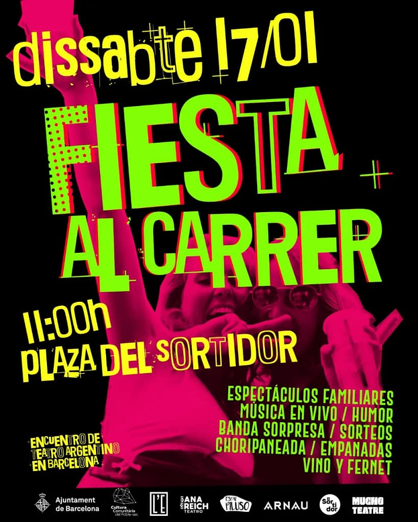 Como cada año la fiesta al carrer sirve no solo para contar el contenido que habrá en el Encuentro de teatro Argentino en Barcelona  sino también como excusa para juntarnos y celebrar en el invierno catalán con buena música, comida y fiesta.